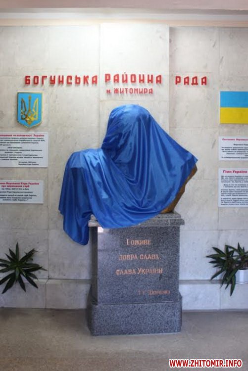В рамках відзначення 200-річчя від дня народження Тараса Шевченка 22 травня у приміщенні Богунської районної ради міста Житомира відкрили погруддя Великого Кобзаря.