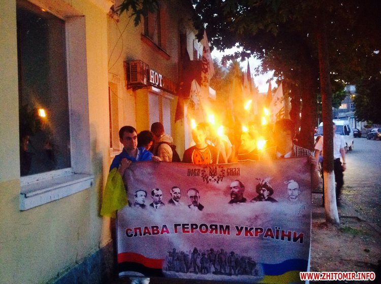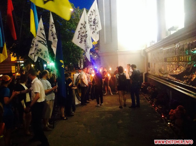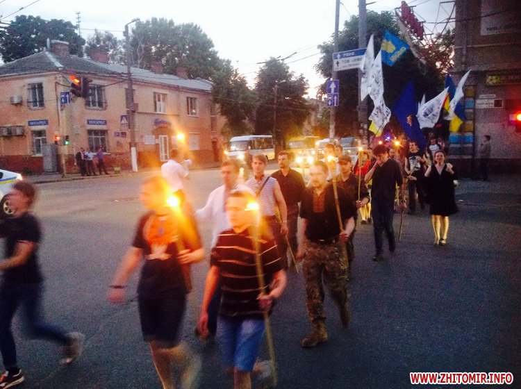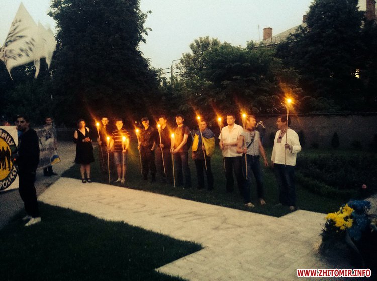 23 травня смолоскипну ходу на честь полеглих українських героїв влаштували житомирські націоналісти. Колоною з 50-ти чоловік, вони пройшли від меморіальної дошки Олегу Ольжичу через Свято-Преображенський та Свято-Михайлівський собори, де хвилиною мовчання пом'янули героїв національно-визвольної війни та героїв Небесної сотні, до пам'ятника «Чорний Тюльпан» на Новому Бульварі.