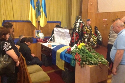 6 июня в воинской части на Корбутовке началась церемония прощания с погибшим под Славянском командиром батальона 95-й аэромобильной бригады Тарасок Сенюком.