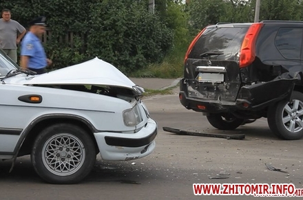 13 июня в Житомире возле Монумента Славы столкнулись два автомобиля – Волга и Nissan. Авария произошла около 17.00 на улице Черняховского.