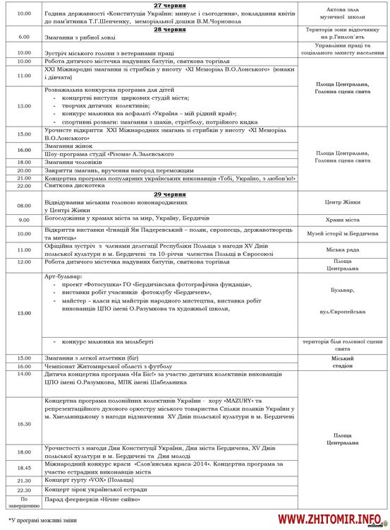 План проведення Дня Конституції опублікований на офіційному сайті Житомирської міської ради.