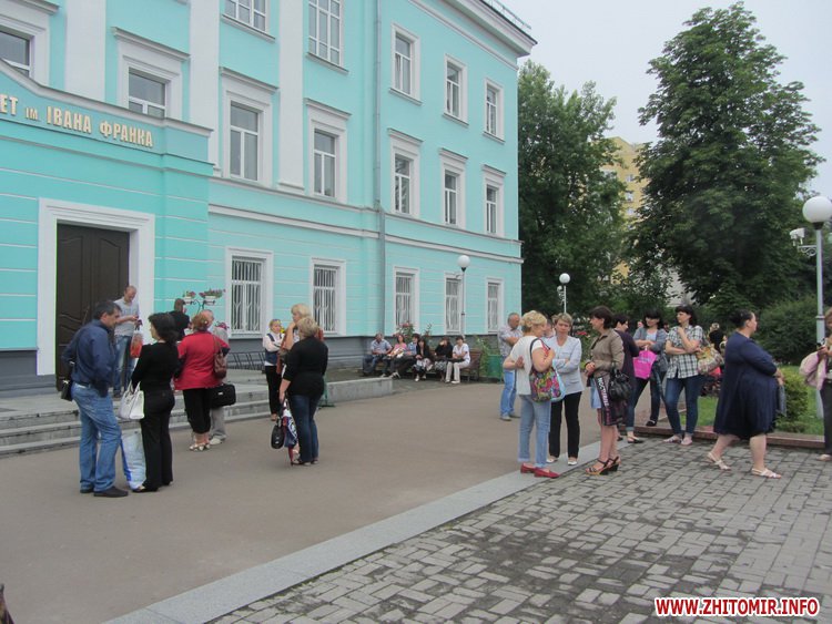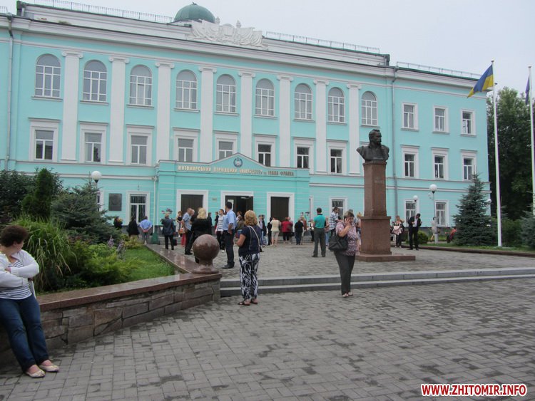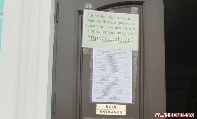Так, близько 9.00 біля Житомирського державного університету ім. І.Франка зібралося більше сотні абітурієнтів та їх батьків. Люди чекають своєї черги, щоб подати документи до приймальної комісії на подвір’ї вузу і всередині навчального закладу.