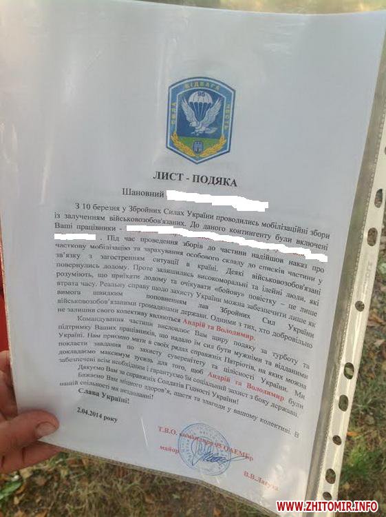 Як повідомляв Житомир.info, 152 десантника - офіцери, солдати, сержанти - за рішенням командувача Сухопутних військ ЗСУ мають бути переведені в інші військові частини.