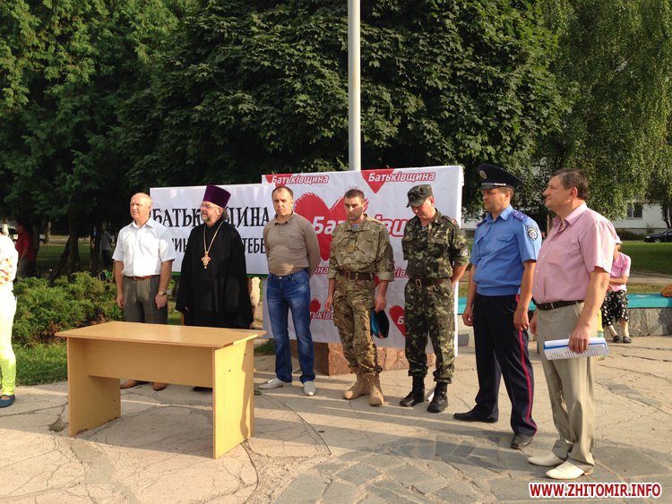 9 серпня в Житомирі на Майдані Польовому відбулися громадські збори в рамках проекту «Батьківщина починається з Тебе» для підтримки Української армії.