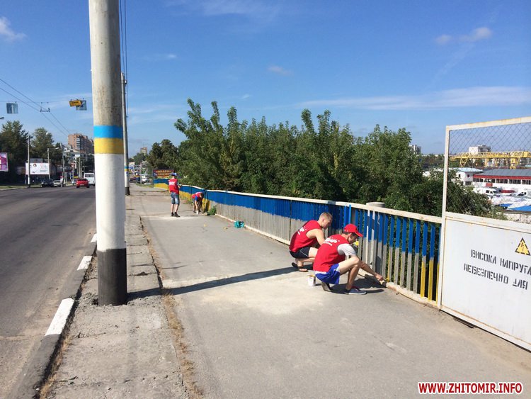 Антон Ракович, голова Житомирської районної організації Молодіжного крила «УДАРу», зібрав команду небайдужої молоді та поставив собі за мету привести до ладу міст, розфарбувавши його в кольори національного прапора.