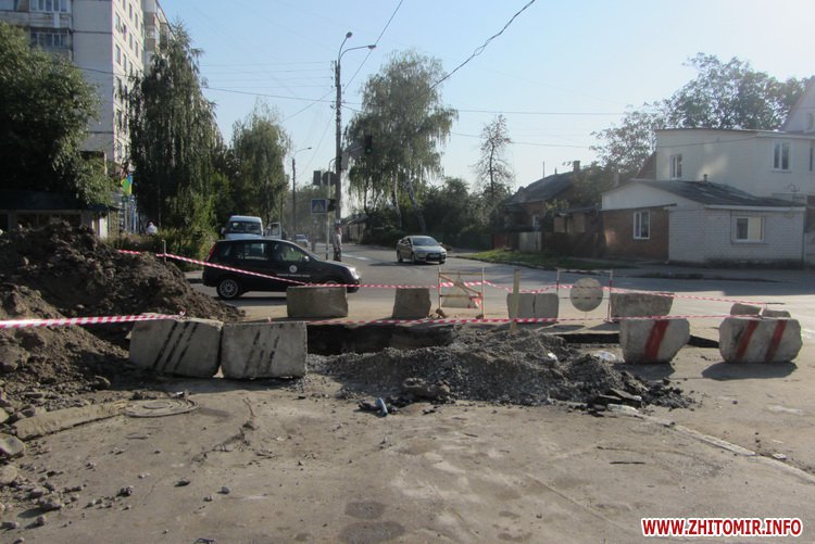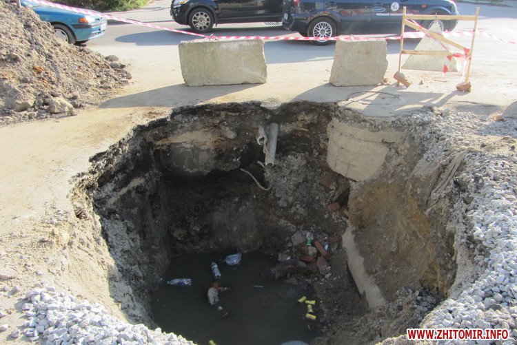 Раніше Житомир.info повідомляв про те, що у жовтні 2012 року в яму, яка утворилася посередині проїзної частини на цьому перехресті, провалився мікроавтобус, а 2 серпня 2014 року туди колесом потрапила маршрутка.