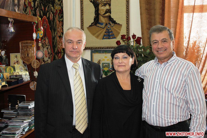 Голова облради Віталій Француз вручив засновнику і незмінному керівнику відомого ансамблю «Сонечко» Михайлу Гузуну Почесну грамоту обласної ради з занесенням до Книги Пошани Житомирської обласної ради.