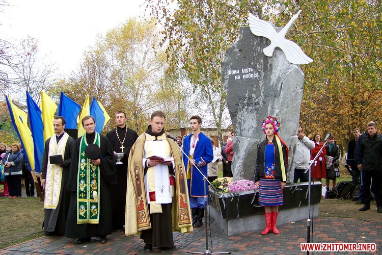Учасники мітингу хвилиною мовчання вшанували світлу пам'ять своїх земляків – жителів Чуднівського району, котрі полягли на сході України за її свободу і незалежність. Серед цих героїв – батько трьох дітей Сергій Русаловський із села Турчинівка, Валерій Іващенко з Городищ та Олександр Романюк з Вільшанки. Їхні імена вдячні нащадки назавжди збережуть у своїх серцях.