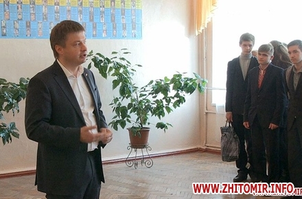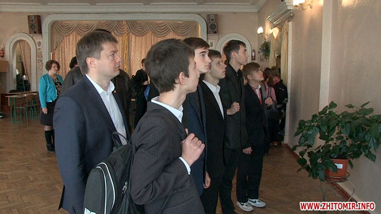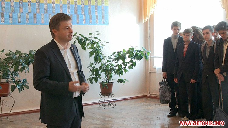 Стенд на честь Героїв Небесної сотні передав школі №36, голова Житомирської обласної організації Всеукраїнського об'єднання «Свобода» Сидір Кізін. Він зустрівся зі старшокласниками і поговорив з ними на патріотичні теми.