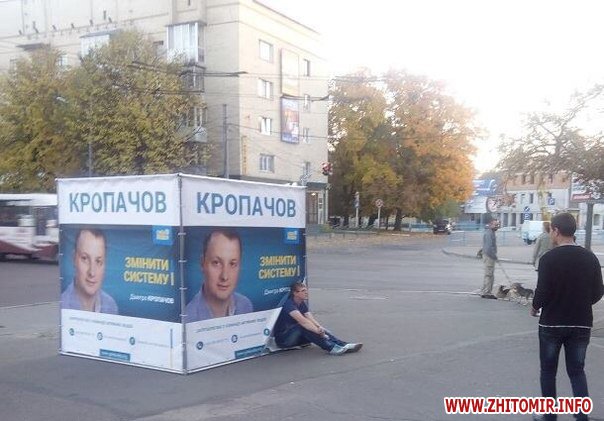 Нагадаємо, що Дмитро Кропачов, на початку передвиборної компанії заявив, що не буде розміщати агітації на рекламних біл-бордах та телебаченні, так як це занадто дорого. Тому інформаційні куби стали єдиним рекламним носієм для інформаційно-агітаційної кампанії Кропачова.