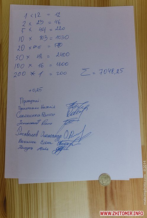«З фотовиставки забрали близько 250 світлин. Усього було відзнято десь 1500 фото. В рамках проекту зібрали 7 тис. 48 грн. 25 коп. Кошти будуть передані Житомирському військовому шпиталю», - зазначила Прокопенко.