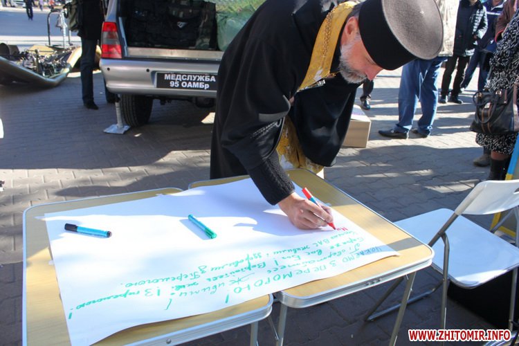 26 жовтня настоятелем Свято-Михайлівського кафедрального собору отцем Богданом Бойко була освячена бронеавтівка для медслужби 95-ї окремої аеромобільної бригади від небайдужих житомирян.