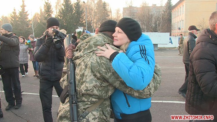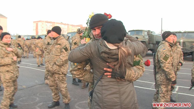 Утром 5 ноября в Житомире встречают бойцов 95-й бригады.