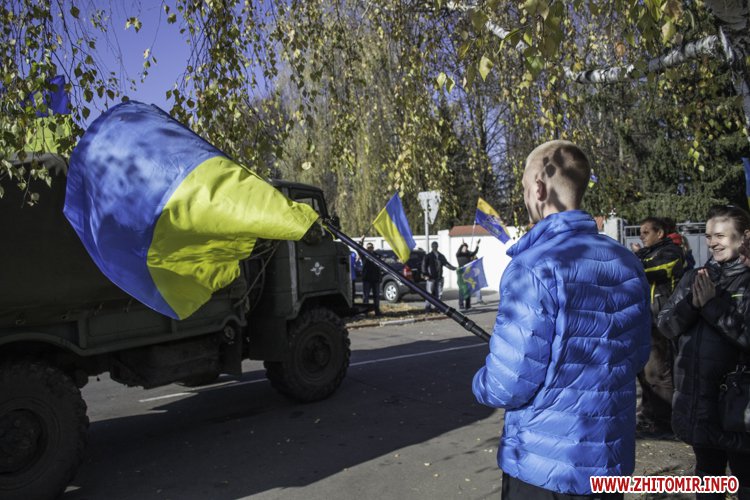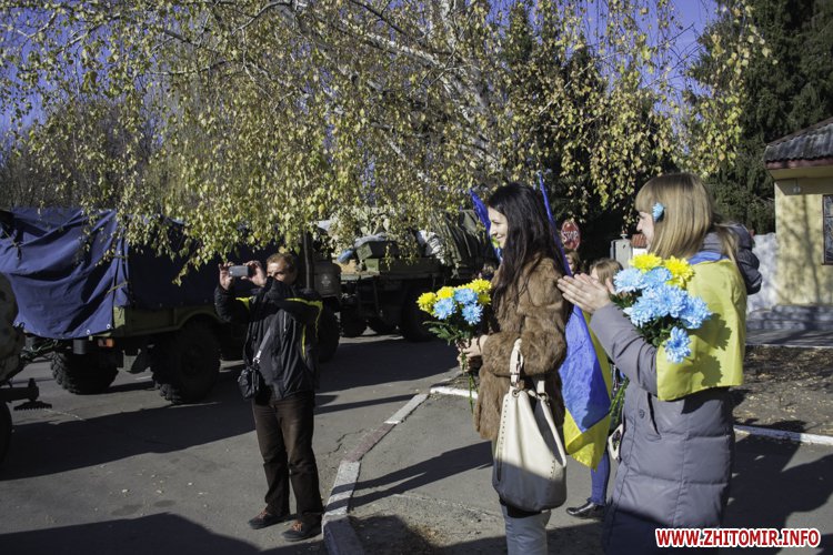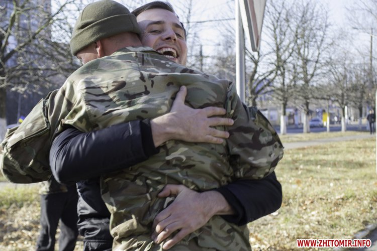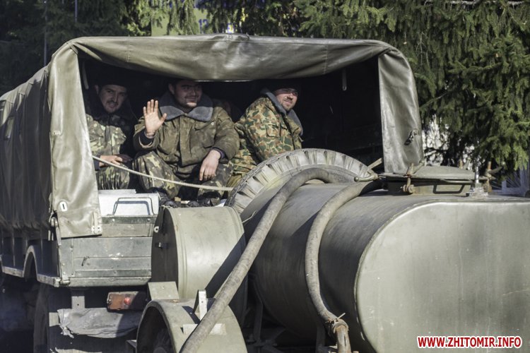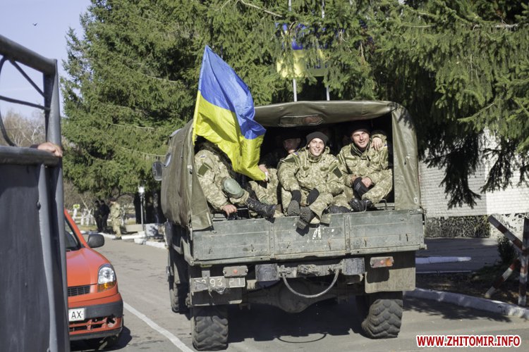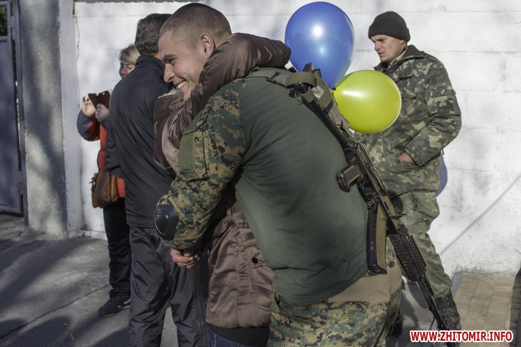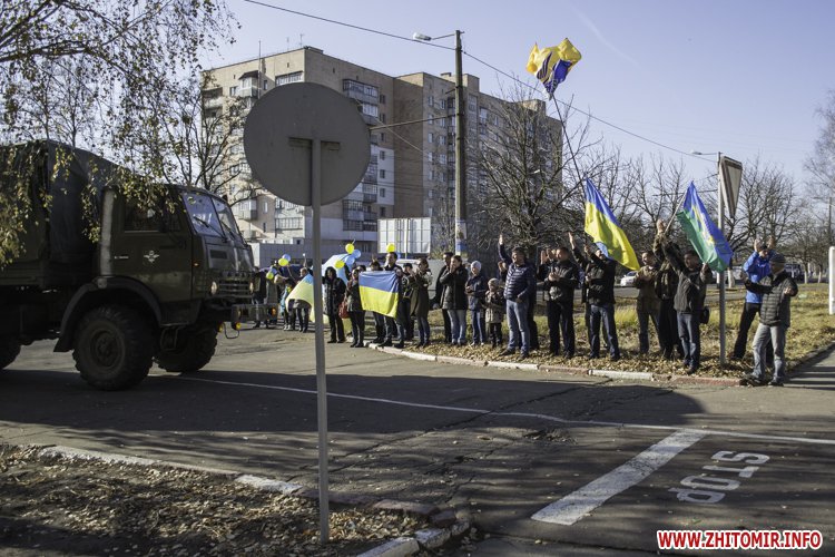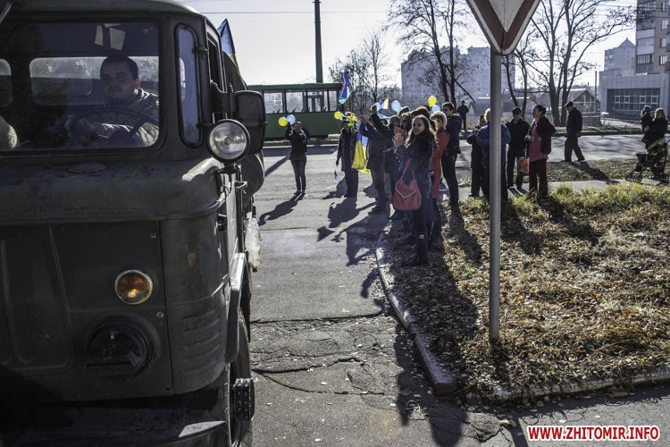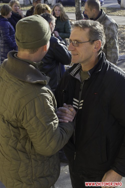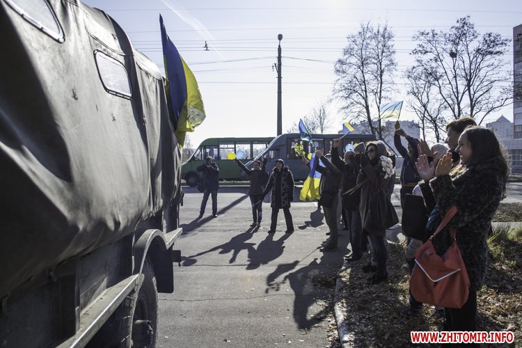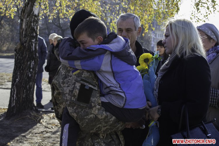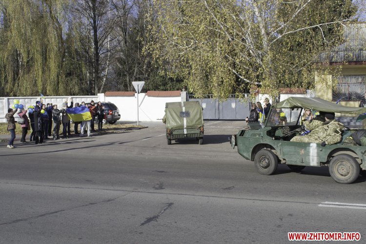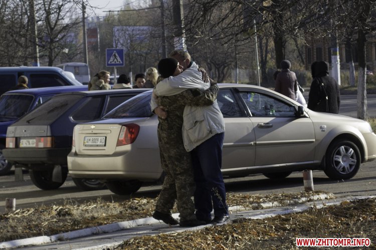 З самого ранку у Житомирі люди зустрічають десантників 95-ї бригади, які повернулися з зони АТО. Перші машини почали під’їжджати до військової частини на Корбутівці ще о 7.20.