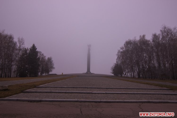 Зранку 11 листопада вулиці Житомира застелив густий туман. Будівлі, дерева, транспорт, пішоходи – все сховалося під сірою імлою.