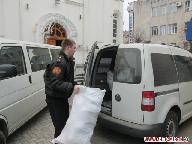 15 листопада співробітники ДСНС Житомирської області спільно з парафіянами Свято-Михайлівського кафедрального собору в черговий раз передали переселенцям з Донбасу речі першої необхідності.