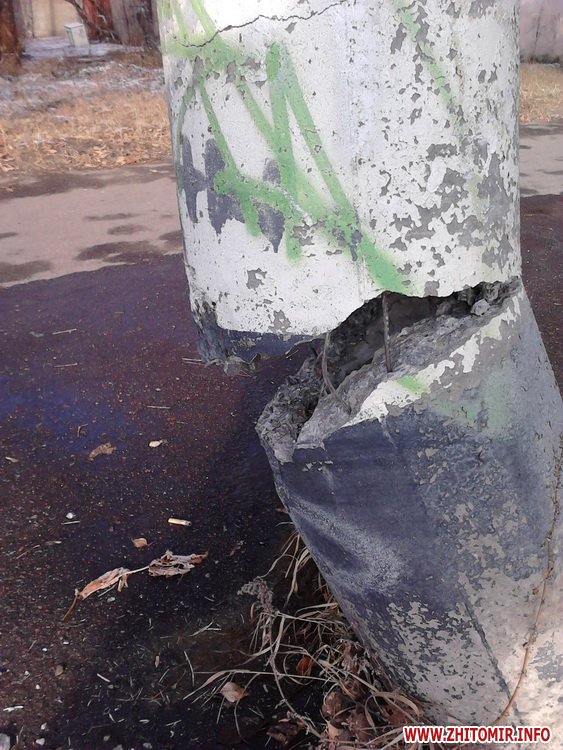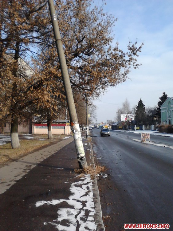 Читатели прислали Житомир.info фотографии наклоненного столба возле дороги на улице Котовского.