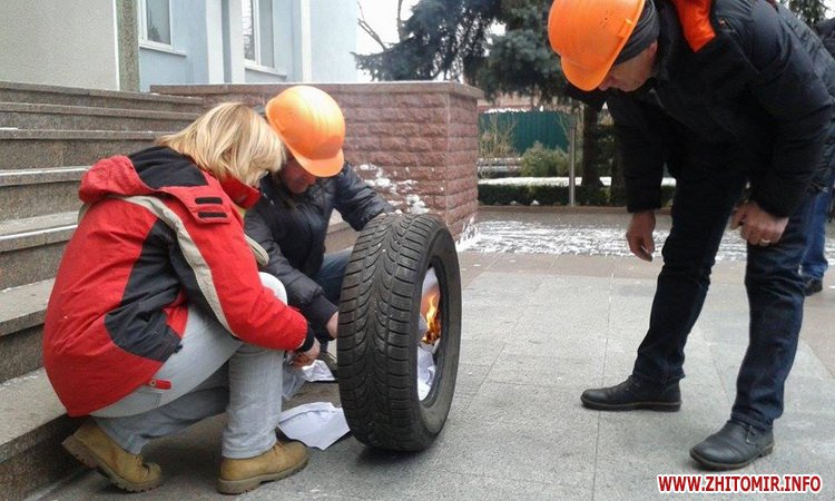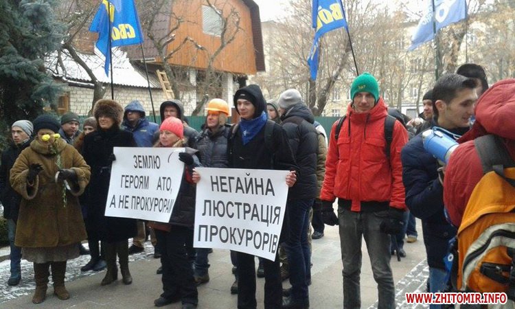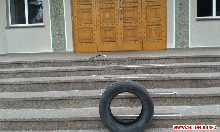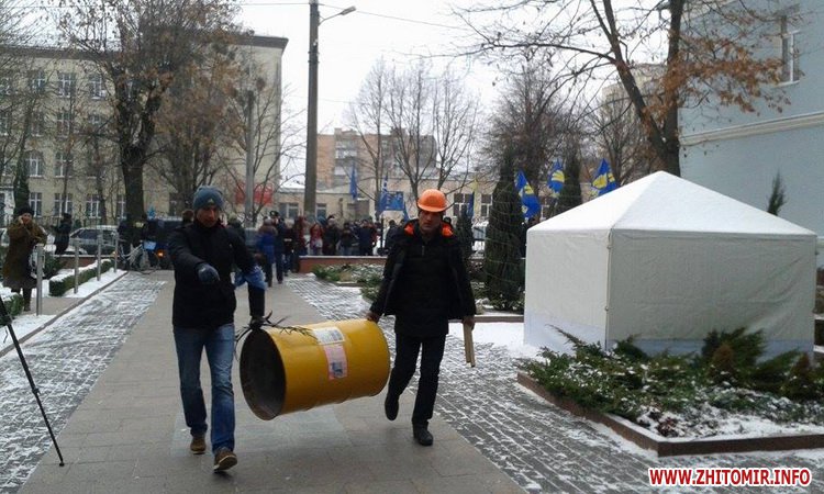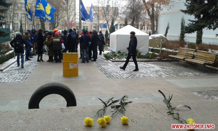 1 декабря в Житомире к областной прокуратуре пришли активисты с шинами, флагами, бочками и желтыми гвоздиками.