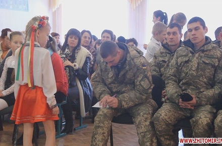 18 грудня в житомирській школі №36 учні концертом віддячили героям, які захищають Україну, та влаштували справжнє полювання за автографами легендарних «кіборгів» з 95-ї окремої аеромобільної бригади.