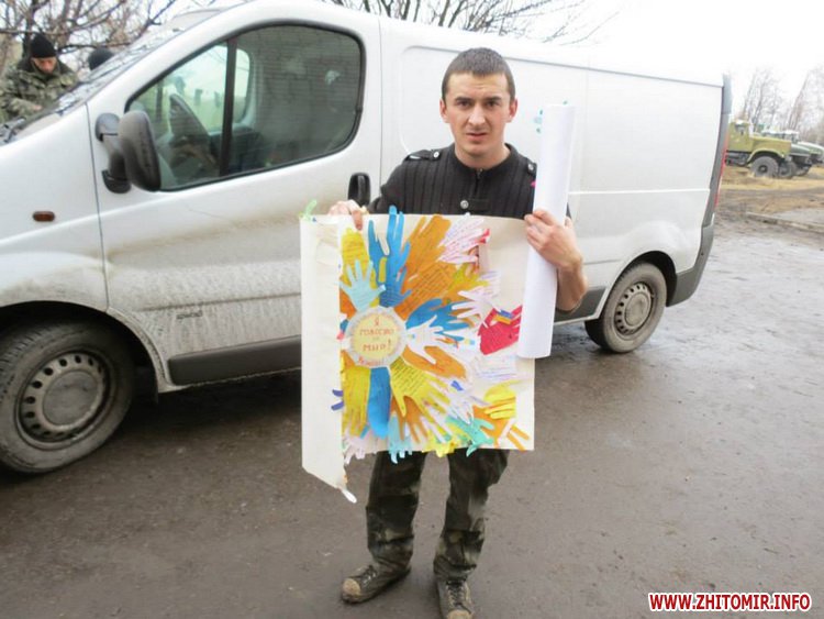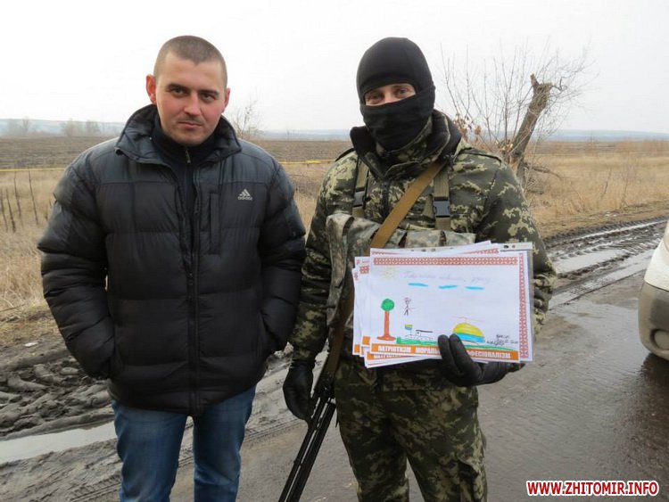 Ну, конечно же на обратной дороге в Харькове стоят «беркута» и как всегда: «что везем», и давай машины простукивать, просматривать рюкзаки, карманы – все, как всегда. А на предпоследнем блокпосту нас снова ожидал позитив. Останавливаемся, к нам подходит военнослужащий в балаклаве, как оказалось, милиционер. Спросил, откуда едем. Я рассказал, где были, что возили и что сейчас держим путь-дорогу домой. Он спросил, откуда мы. Отвечаем – из Житомира. А он говорит: «А я тоже из Житомира». Все, что у нас осталось – несколько фонарей, сладкое, вода – отдали ребятам. Приятно встретить блокпост, где написано не «Беркут Закарпатье», а «Житомир» – на желто-голубом флаге.
