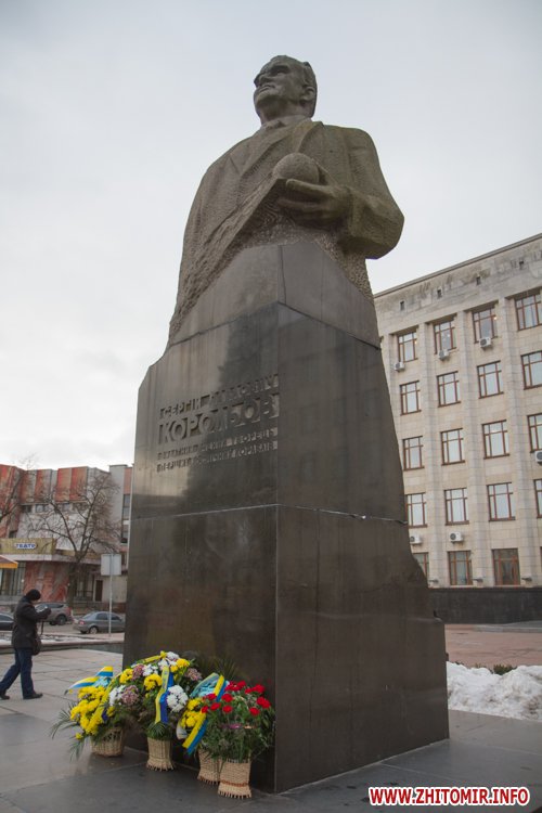 У Житомирі 12 січня, у 108-у річницю від дня народження видатного українського ученого, конструктора ракетно-космічних систем Сергія Корольова, відбулося урочисте покладання квітів до його пам’ятника.