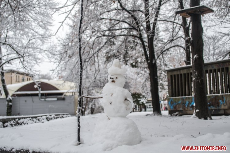 Житомир засипало снігом. Сніжити у місті почало у другій половині дня 19 січня, і вранці 20 січня житомирян зустріли будинки, дерева й автомобілі, одягнені у пухкі білі «шапки».