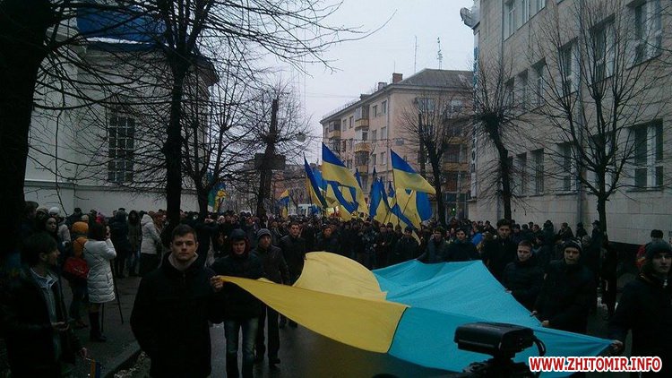 З нагоди Дня Соборності України у Житомирі 22 січня проходить акція «Ланцюг єдності», до якої долучилися кілька тисяч людей.