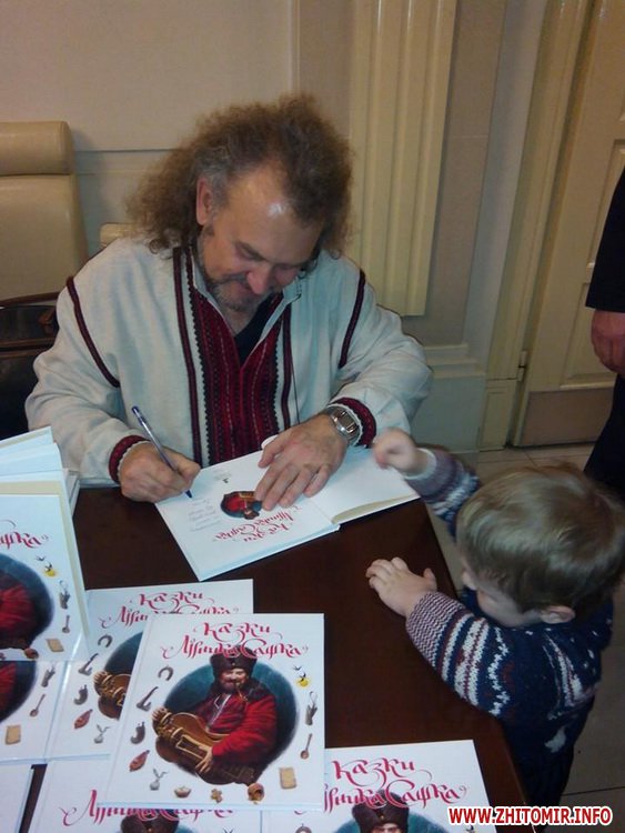 Після показу Лірник взяв участь у фотосесії для житомирян та ставив автографи на своїй книзі «Казки Лірника Сашка».