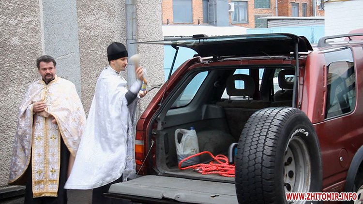 27 січня в Свято-Михайлівському кафедральному соборі Житомира освятили автомобіль Opel-Frontera, придбаний у Польщі, який волонтери передають на передову бійцям з «Правого сектору».