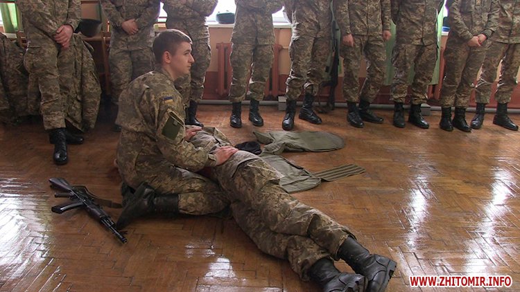 Курсанти Житомирського військового інституту ім.Корольова активно тренуються. зпиняти кровотечу, поновити пульс чи розблокувати дихальні шляхи. Майбутні офіцери вчаться, як рятувати життя собі та своїм побратимам, на рахунку кожна секунда.