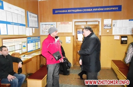 Керівник управління ДМС у Житомирській області Олександр Радько пояснив, що в одному приміщенні на вул.Пушкінська, 44 у Житомирі закордонні паспорти оформляють Державна міграційна служба і ДП «Документ».