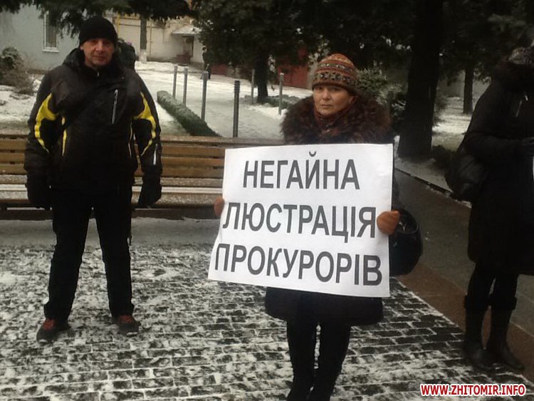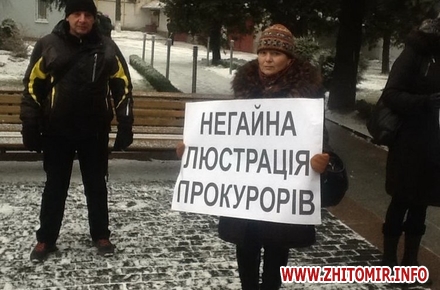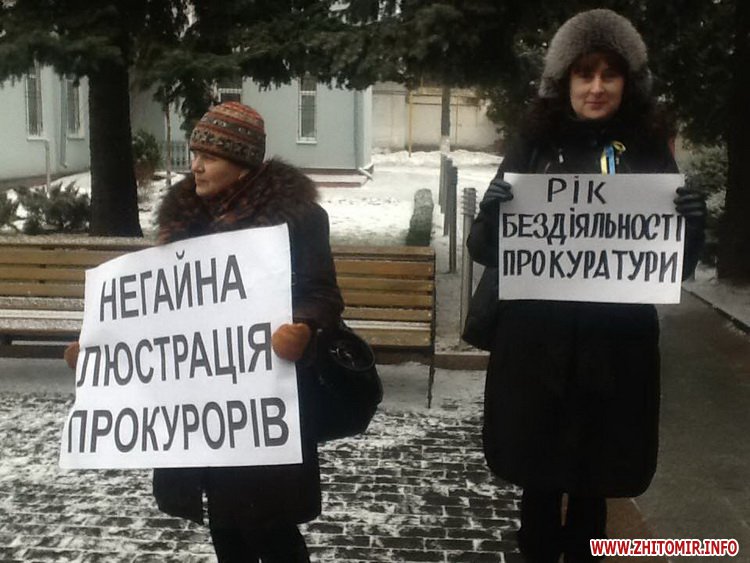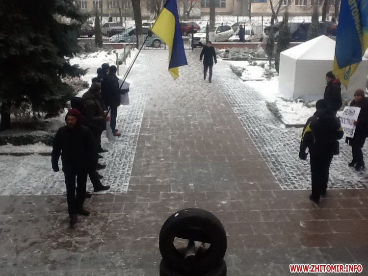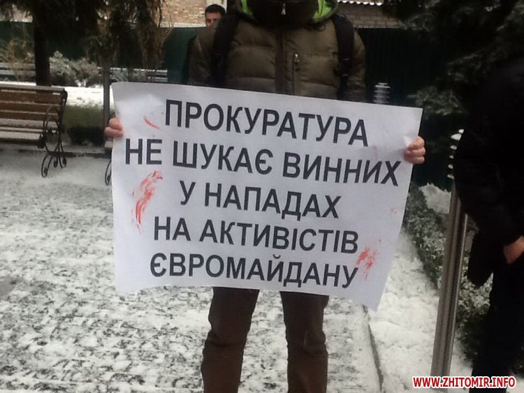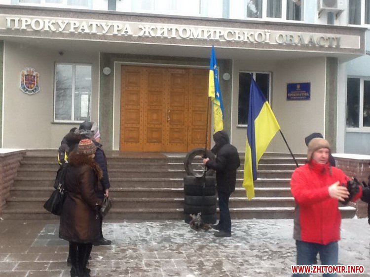 Вранці 19 лютого близько десятка представників ГО «Рух Автомайдан-Житомир» пікетують прокуратуру у Житомирської області (на вул. 1-го Травня), протестуючи проти бездіяльності органу.