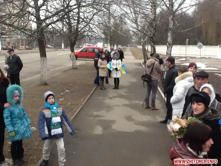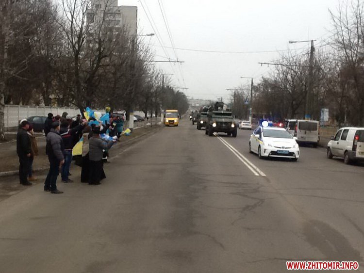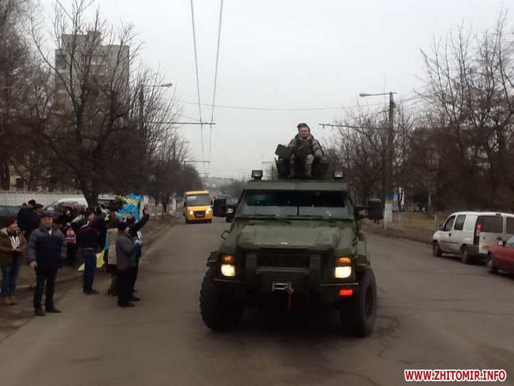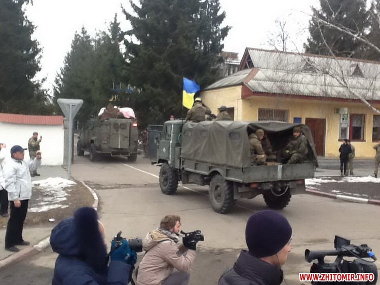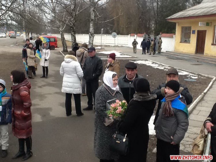 Опівдні 22 лютого біля КПП військової частини на Корбутівці у Житомирі (за адресою вул. Черняховського,112) рідні та друзі зустрічають бійців 13-го окремого аеромобільного батальйону 95-ї аеромобільної бригади, які повертаються з АТО.