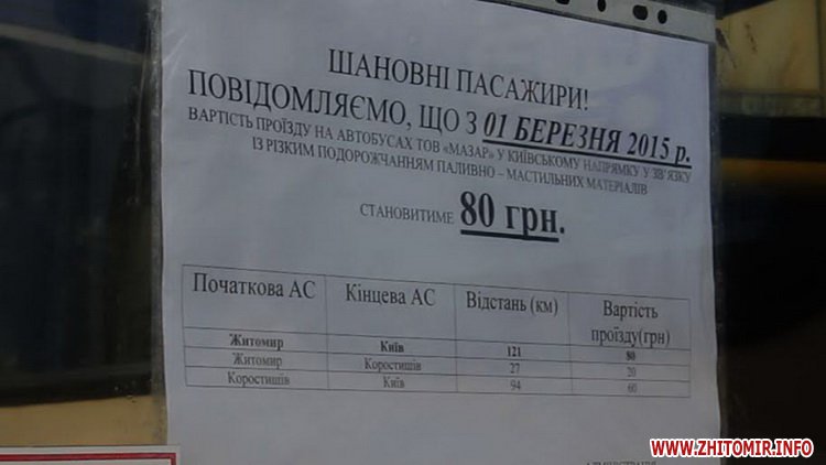 Проезд в маршрутках "Житомир-Киев" опять подорожал