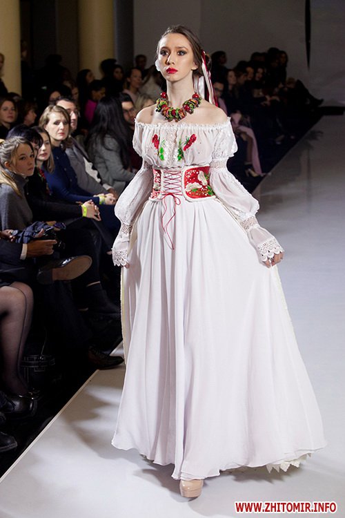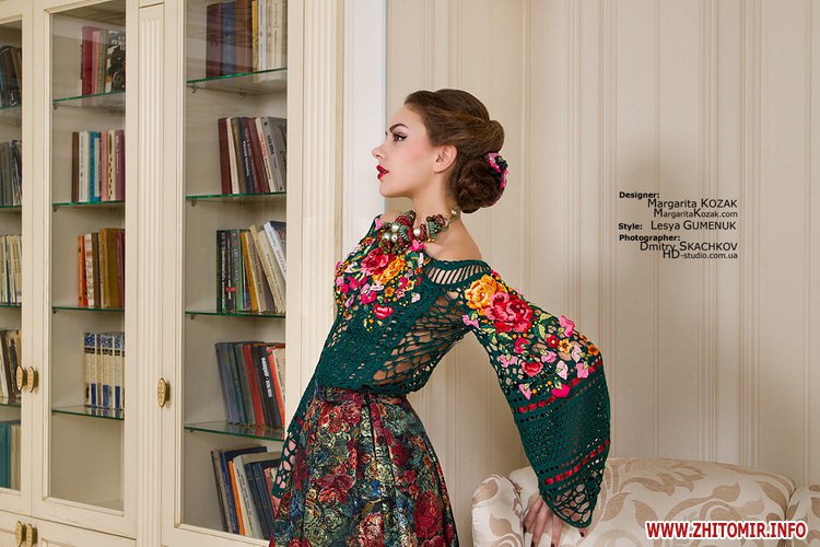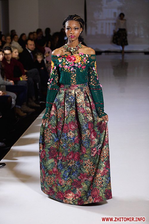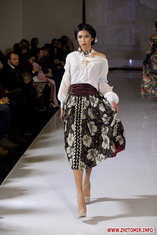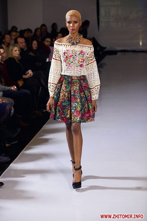 Подчеркивая разнообразие возможностей для самовыражения через одежду в этно стиле, Маргарита Козак объединила в коллекцию такие разноплановые вещи как жаккардовые юбки, вязаные блузы и даже шифоновое свадебное платье. Роль связующего звена, стилистически объединившего коллекцию, выполнили цветы, плавно переходящие с рисунка ткани юбок на шелковую вышивку блуз, подчеркнутую нежными бутонами ручной работы.