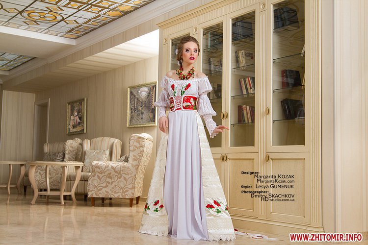 Тщательно изучив традиционный полесский костюм, Маргарита Козак разработала его современную дизайнерскую версию – стильную и модную. Сохранив во всех моделях коллекции характерный для народного костюма силуэт, дизайнер далеко вышла за рамки скромного классического сочетания белого и красного цветов, наполнив каждую модель естественными красками живописной полесской природы.