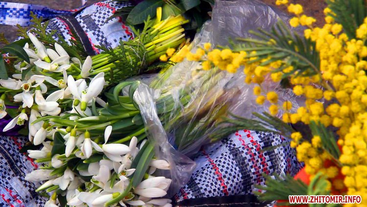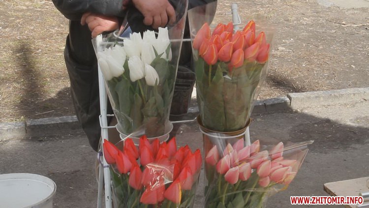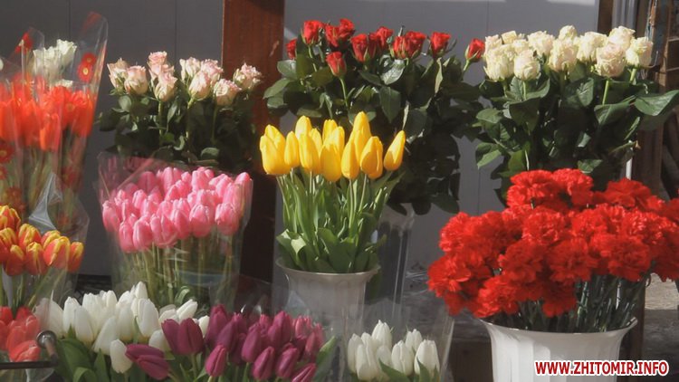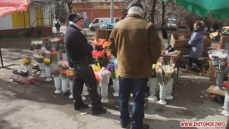 Шостого березня на квіткових ринках Житомира людей обмаль, продавці скаржаться на слабкий інтерес з боку покупців. Попитом користуються в основному тюльпани, мімоза, крокуси та підсніжники, рідше – троянда, ціни на яку на порядок вищі, ніж на тюльпани. Продавці сподіваються, що 7-8 березня попит традиційно зросте, а ще кажуть, цього року охочих подарувати жінкам квіти менше, ніж зазвичай – населення бідніє.