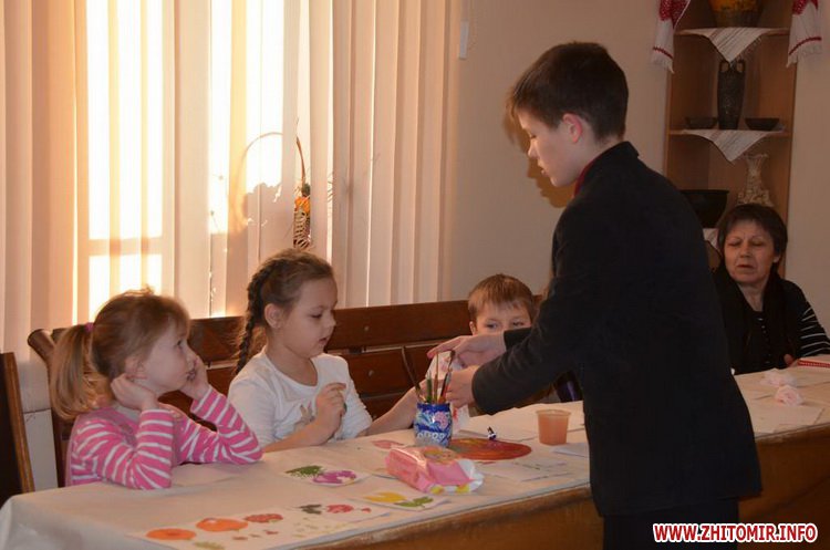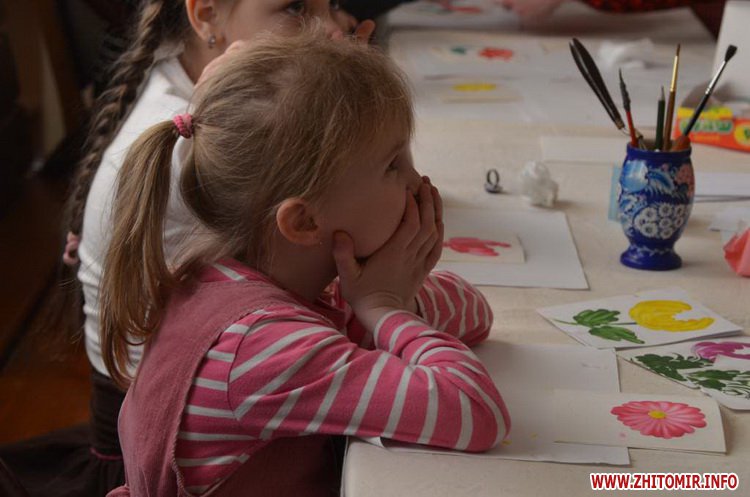 10 березня у приміщенні Будинку урочистих подій, де, власне, зараз знаходиться управління культури міськради, відбувся майстер-клас з петриківського розпису для дітей. Секретами цього дивовижного українського мистецтва поділилися учень художньої школи Житомирської міської ради, лауреат та дипломант багатьох конкурсів дитячої та учнівської творчості Данило Бовкун та його мама Оксана.