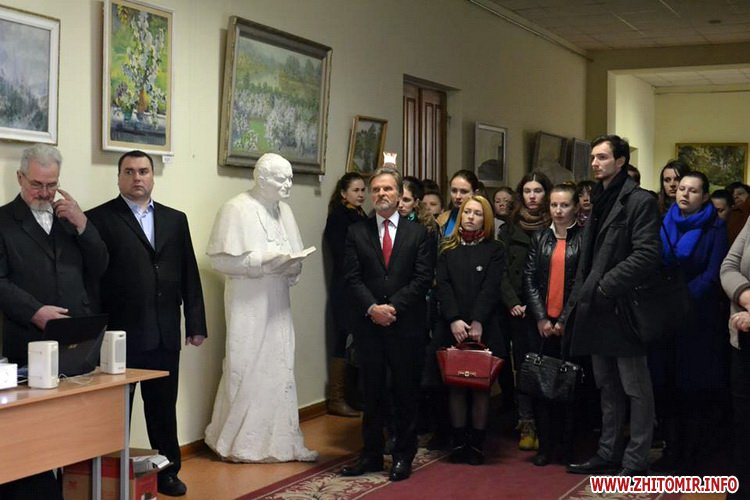 На другому поверсі центрального корпусу Житомирського державного університету імені І. Франка урочисто відкрили виставку картин з колекції Кмитівського музею образотворчого мистецтва імені Й. Буханчука.