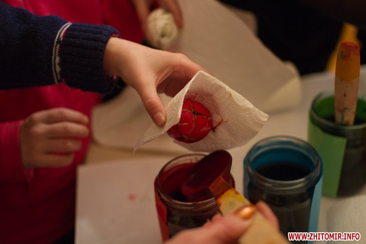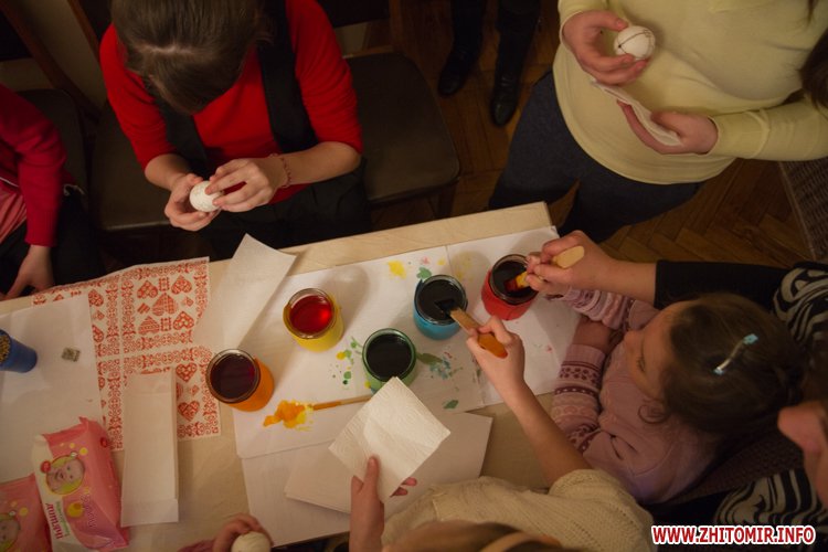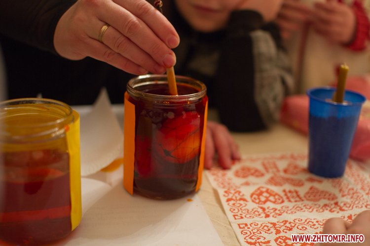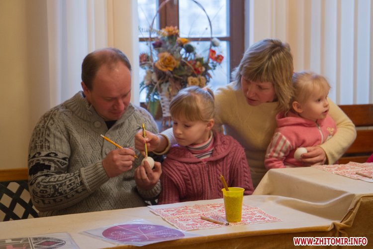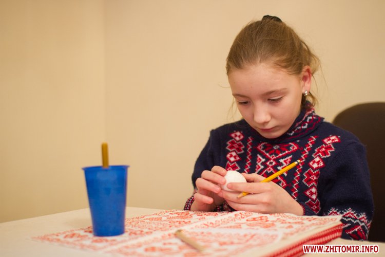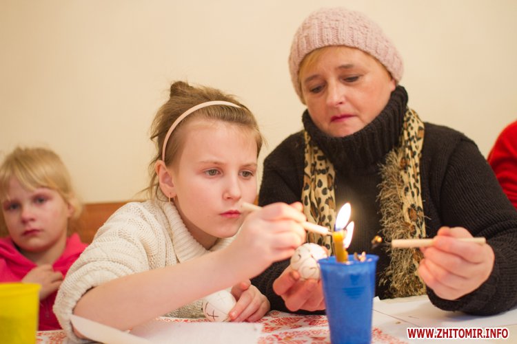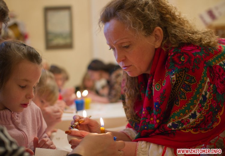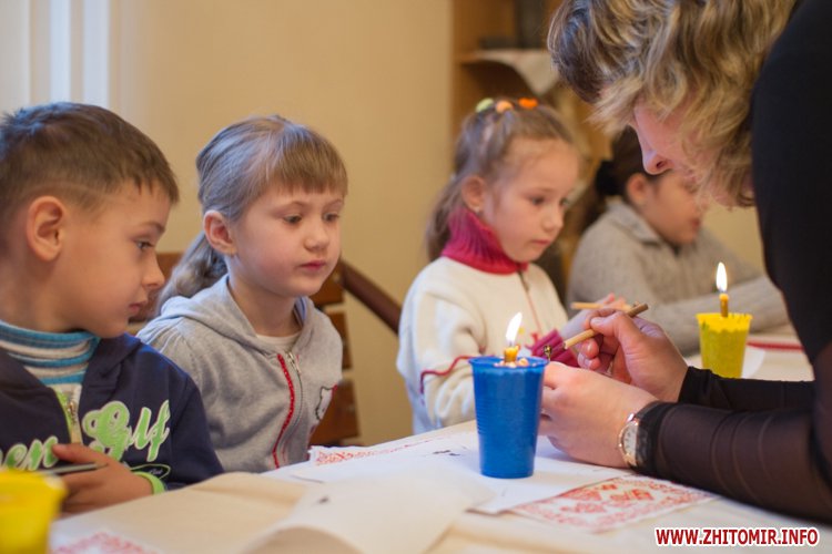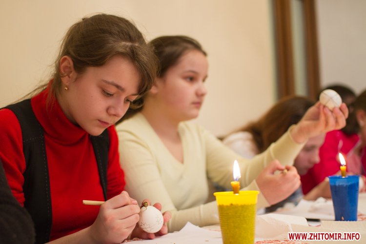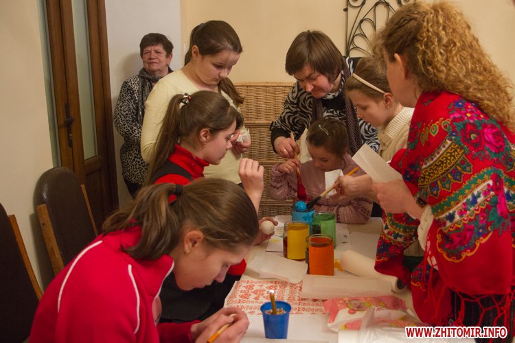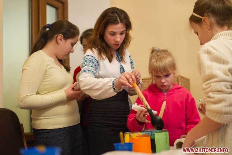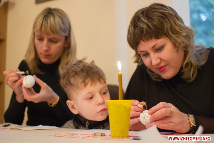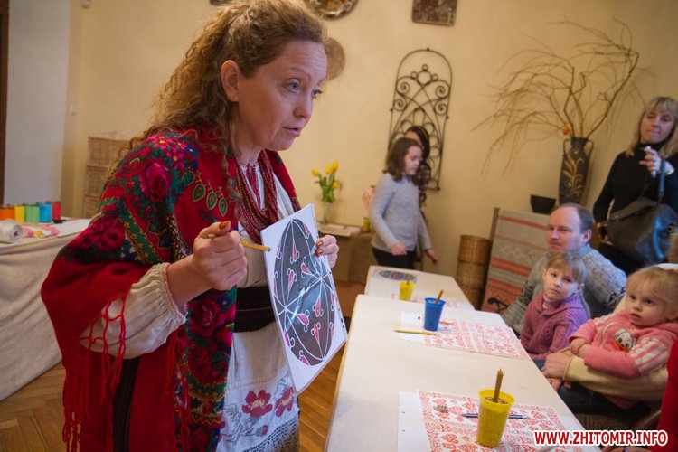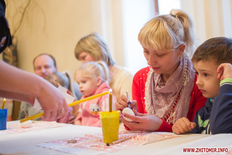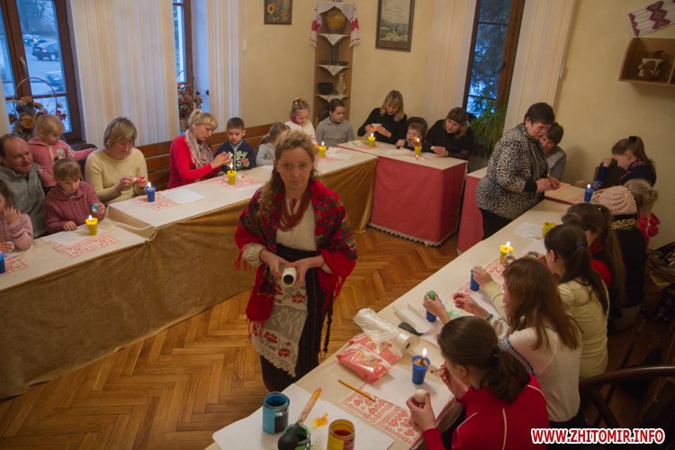 Творити «неповторне багатство» 13 березня у Будинку урочистих подій житомирських дітлахів вчила майстриня, голова обласної молодіжної творчої спілки художників та мистецтвознавців Інна Величко. Разом з дітьми мистецтву творити писанки охоче вчилися і дорослі.