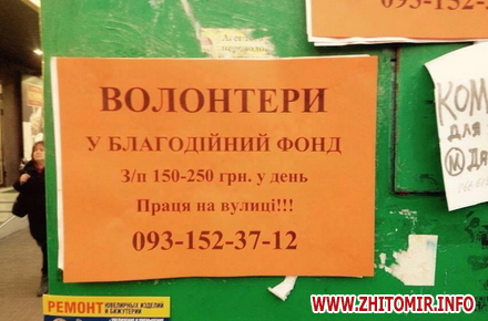 Как сообщал Житомир.info, летом прошлого года городской Центр социальных служб для семьи, детей и молодежи провел в Житомире исследование и выяснил, что деятельность волонтеров, работающих с ящиками на улицах города, одновременно нарушает несколько законов, а уличные сборщики денег «на лечение детей» получают зарплату – до 30% от собранной за день суммы.