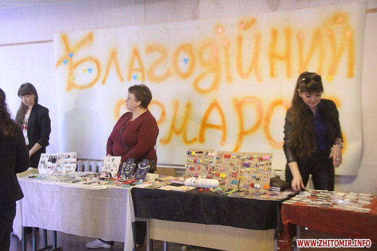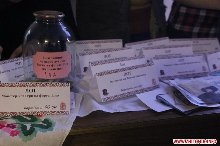 На аукціоні пропонувались перукарські та манікюрні послуги за «не кусючі» ціни. Також відвідувачі благодійного ярмарку могли придбати фотосесію від найкращих студентів-фотографів, відзняти відеоролик, зробити патріотичну «аватарку», прикупити оригінальні прикраси ручної роботи, покуштувати тістечка та вареники, які приготували «франківці». Громадська організація «Оберіг», житомирські майстрині представили прикраси hand-made, зменшивши ціни на них.