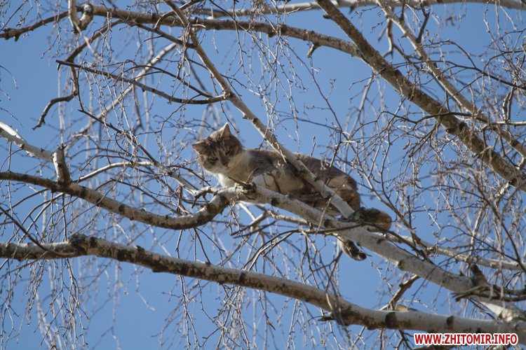 10 апреля в Житомире возле здания облгосадминистрации пожарные снимали с дерева кота.