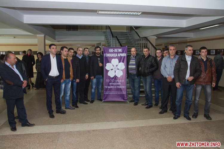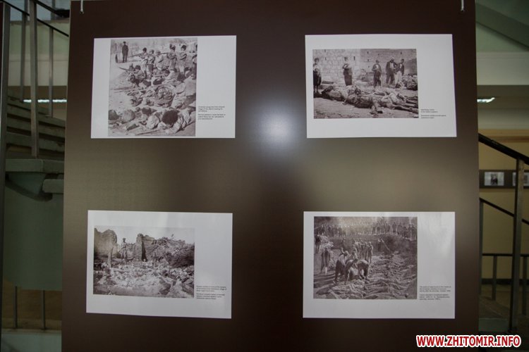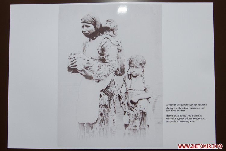 «Геноцид вірмен – одна із найбільших трагедій ХХ століття… Жорстокість і аморальність дій тогочасної турецької влади, спрямованих на тотальне винищення вірменського народу шокують. Ця виставка показує, що як і ви, ми знаємо що таке трагедія, що таке загальнонаціональна скорбота і що таке жорстока війна за виживання. І ми – народи, які пережили не одну спробу винищення зобов’язані пам’ятати свою історію та робити все задля того, щоб попередити повторення злочинів проти людства. Деякі з представлених нами світлин зображують надмірну жорстокість і є нелегкими для сприйняття, але це реалії нашого народу, це наша історія», - прокоментува відкриття виставки голова ГО «Житомирська обласна община вірмен «ЕРЕБУНІ» Грант Даян.