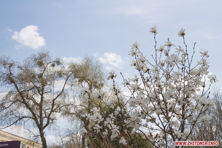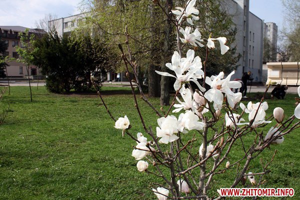 У центрі Житомира квітнуть магнолії – біло, рожево, ароматно. Ця тендітна весняна краса дарує перехожим – навіть особливо заклопотаним - настрій і посмішку.
