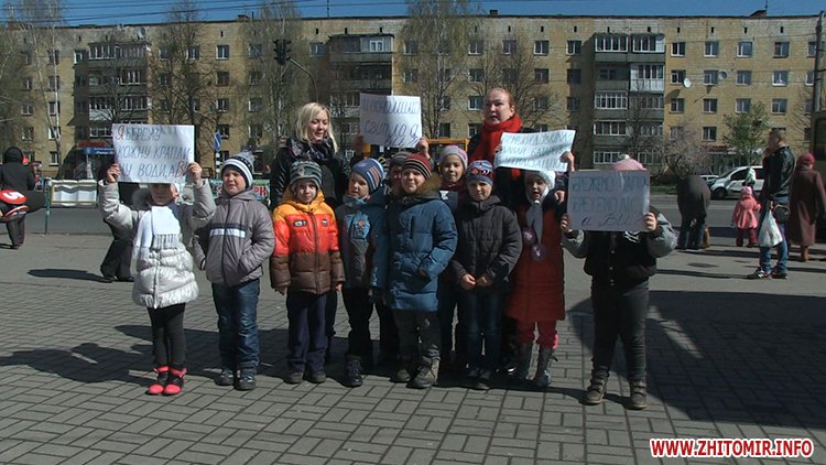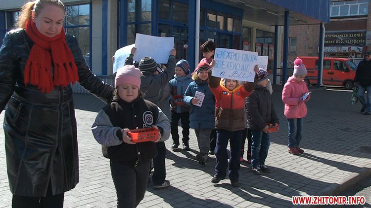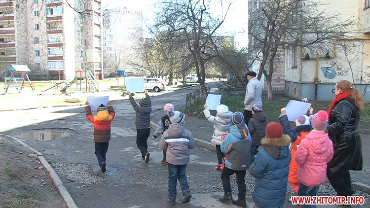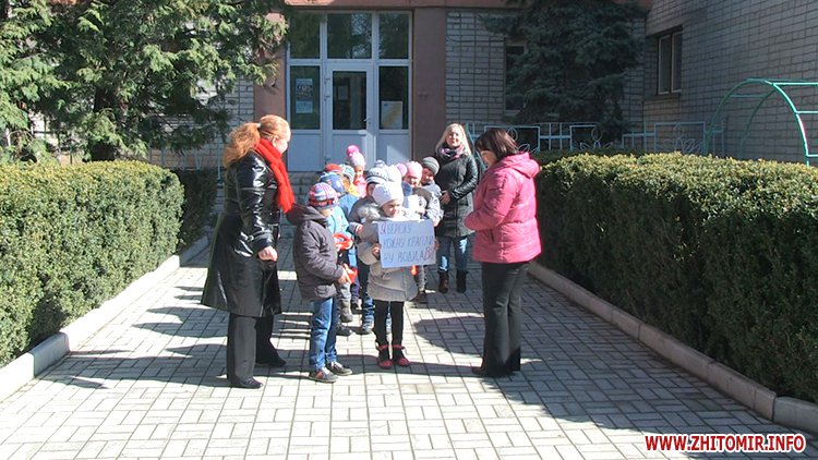 22 квітня з плакатами у руках вихованці житомирського дитсадка №71 виходять на прогулянку. Їм ніколи бавитися на майданчику, бо мають багато важливих справ.