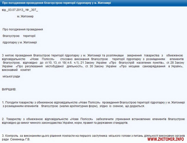 «Зараз, я вважаю, є злочинне рішення: в 2013 році виконком Житомирської міської ради підписав рішення щодо благоустрою території гідропарку та встановлення МАФів. Навіщо нам комплексна схема тоді? Ми її півтора року розробляли, наше управління архітектури. Ми її зробили, знаємо зони, знаємо де можна встановлювати МАФи. Зараз (діє) якесь рішення, яке повністю закреслює цю схему, до якої ми йшли», - розповідає Малиновський.