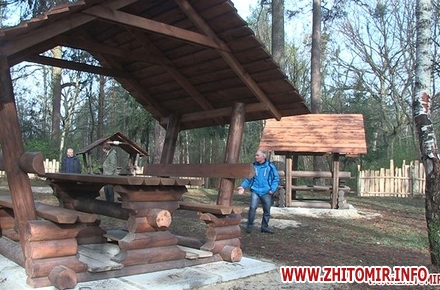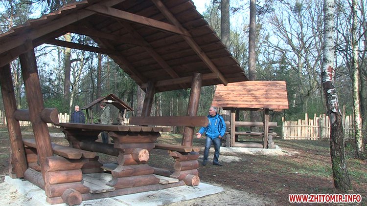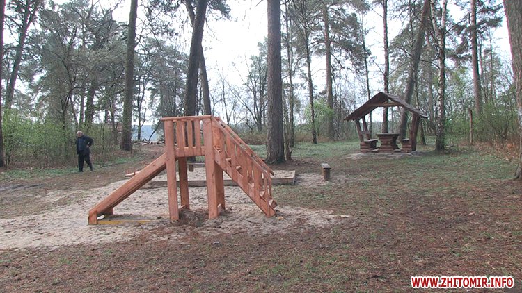 В самісінькому центрі гідропарку з’явилась нова зона для відпочинку – дерев’яні альтанки на бетонних плитах, місце для багаття та навіть дитячий майданчик. Житомирянин Валерій кожного ранку займається спортом у гідропарку, чоловік розповідає: будувати такі альтанки поблизу води – небезпечно.