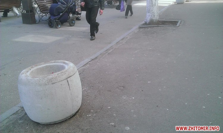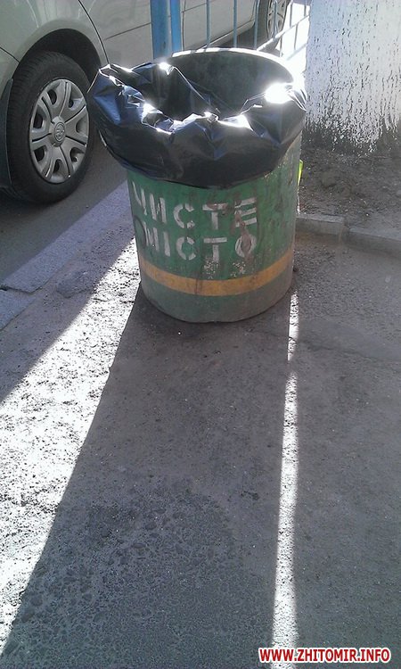 Как сообщал Житомир.info, в 2012 году за 154,6 тыс. грн., выделенных из городского бюджета, власти Житомира покупали у комбината силикатных изделий два вида урн – для улиц и скверов по цене 256 грн. и 320 грн. Весной 2014 года начальник управления жилищного хозяйства Светлана Пивоварова говорила, что в городе после зимы из 812 урн осталось только 500: некоторые разбиты, некоторые вообще исчезли.
