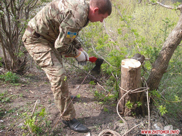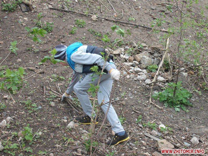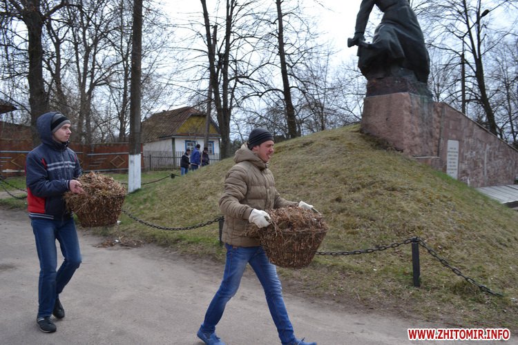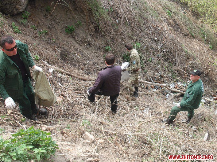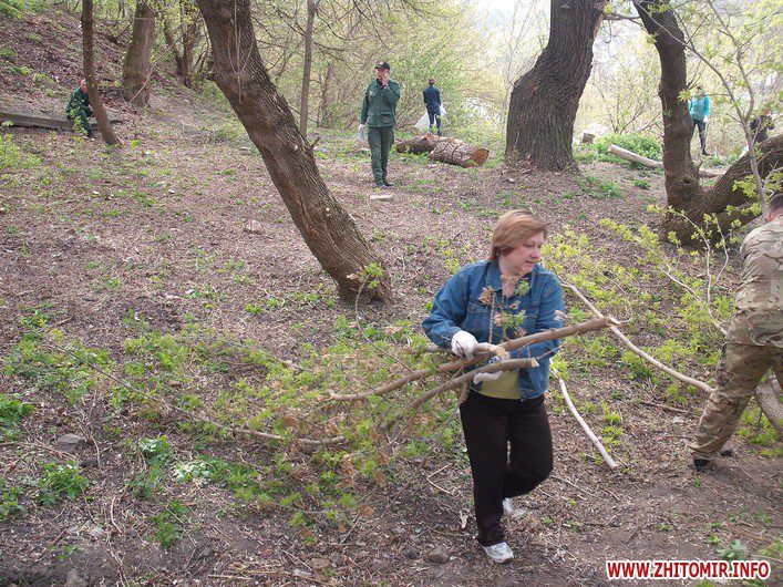 Співробітники Державної екологічної інспекції у Житомирській області разом із активістами громадської організації «Цілком природно» прибирали схили на Замковій Горі. Тут зібралося близько сотні людей з мішками, лопатами, граблями та іншими знаряддями праці. Екологи вказували, які дерева та кущі можна зрізати, аби не нашкодити природі, а чоловіки, жінки, молодь і навіть діти старанно збирали сухостій, пошкоджені гілки і сміття.